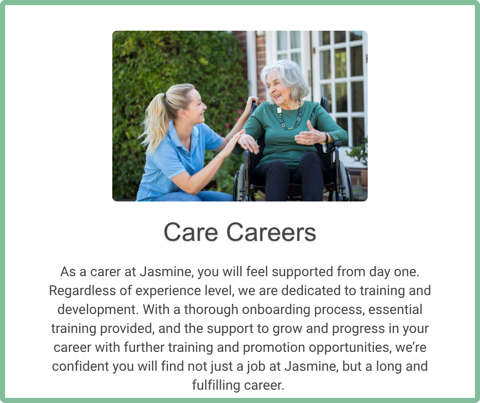 We know working in the care sector is hard work and emotionally demanding, albeit extremely rewarding. That’s why Jasmine are committed to paying team members in excess of the National Living Wage. We believe in thanking and rewarding our team for the amazing work they do.