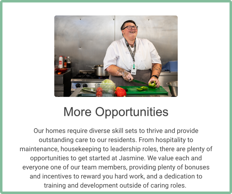 The current opportunities available for you to make a meaningful difference to our residents’ lives are below: